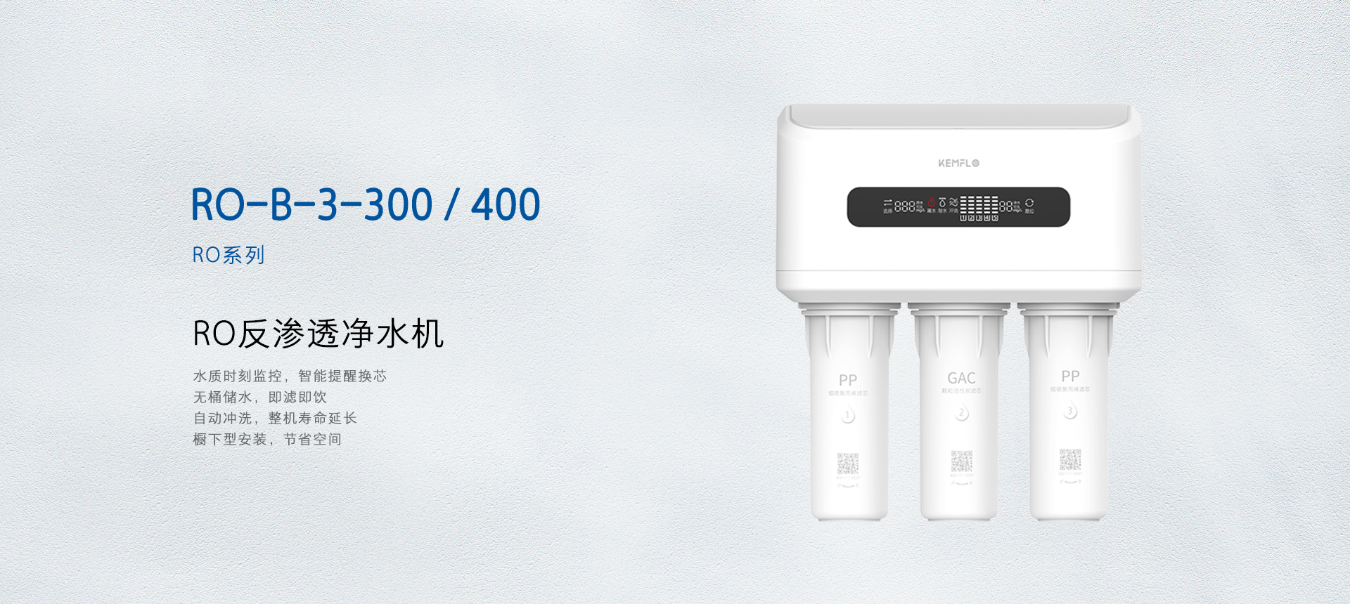 KEMFLO牌RO-B-3-300型反滲透凈水機(jī)凈水產(chǎn)水率符合GB 34914-2021《凈水機(jī)水效限定值及水效等級(jí)》標(biāo)準(zhǔn)的3級(jí)要求;